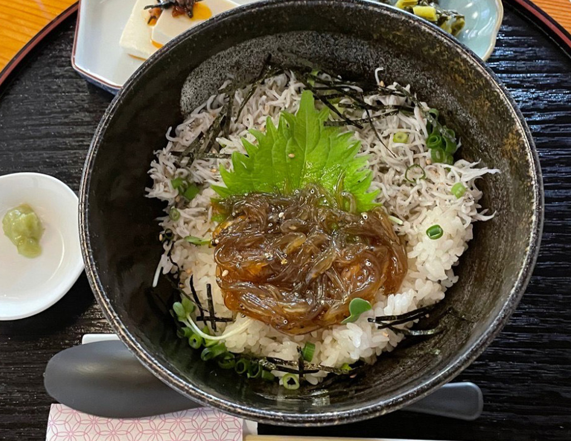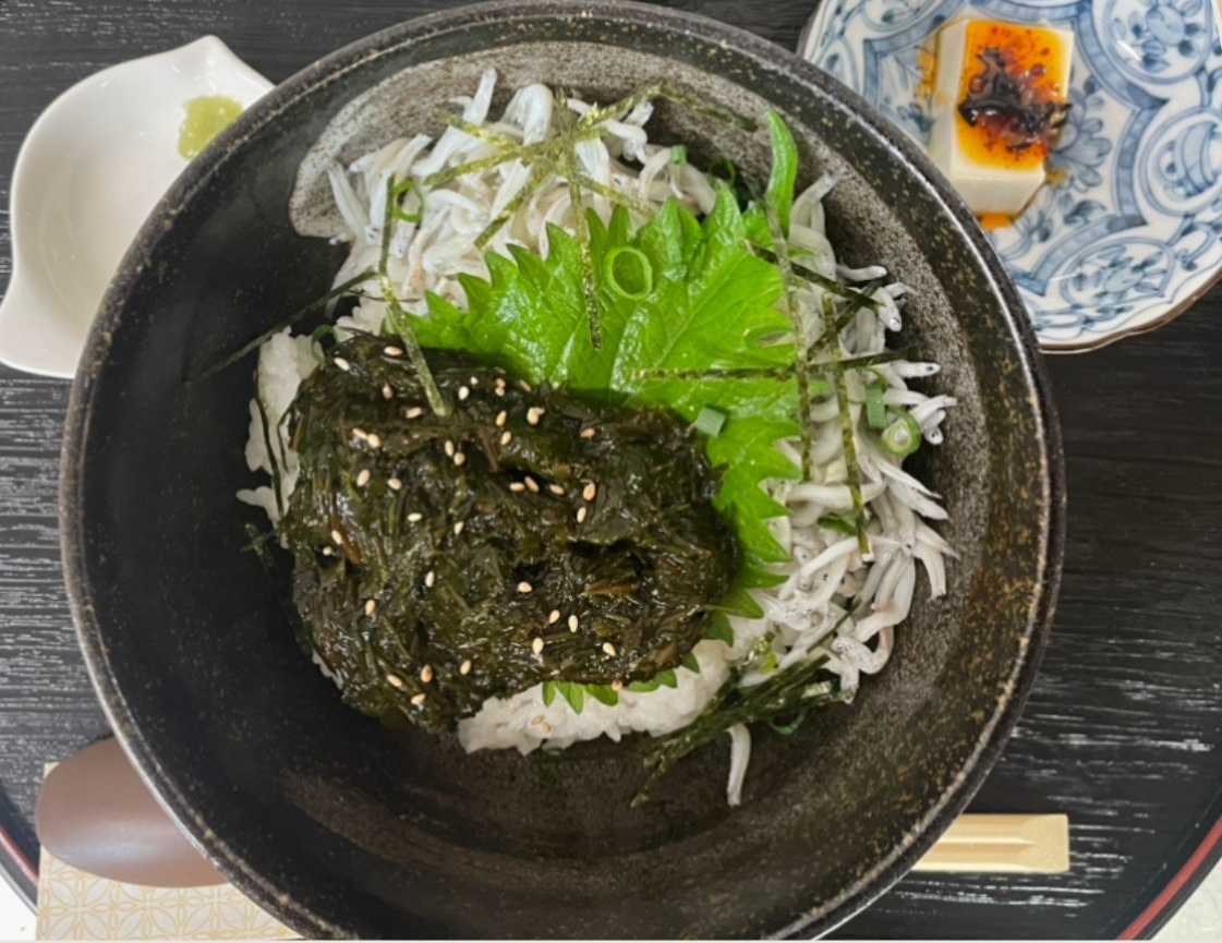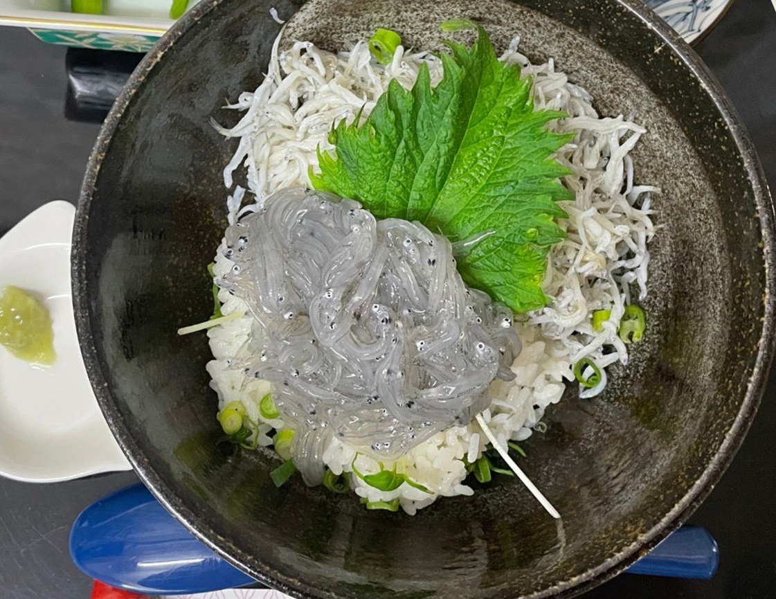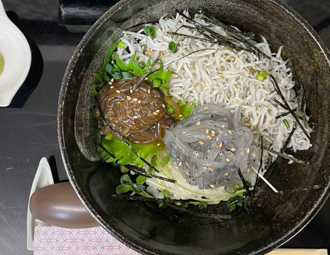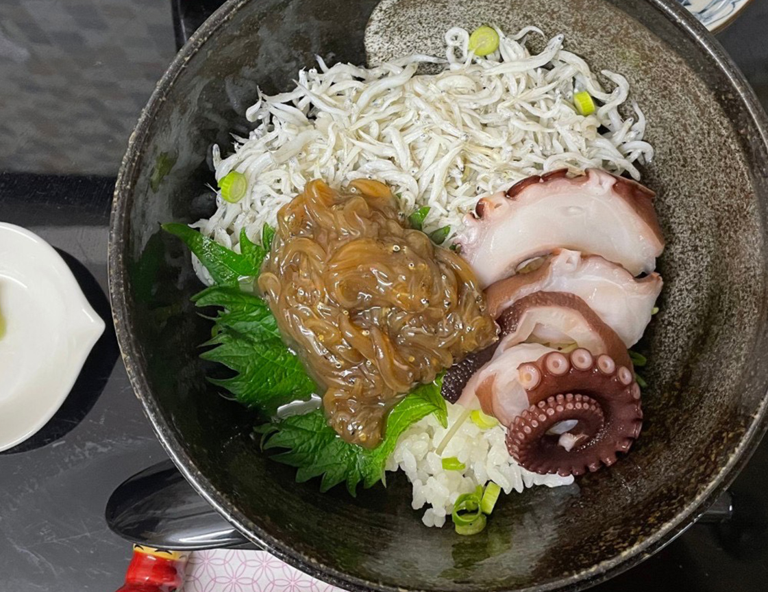 釜揚げしらす・生しらす・生しらすの沖漬けの3つの味が楽しめます。